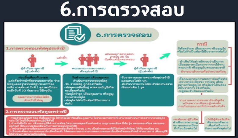 - กำหนดแนวทางควบคุม กำกับดูแลรักษา ตรวจนับ ตรวจสอบสภาพการใช้งานทรัพย์สินของราชการ ของบริจาคโดยเฉพาะทรัพย์ประเภทที่มีความเสี่ยงในการนำไปใช้โดยมิชอบ